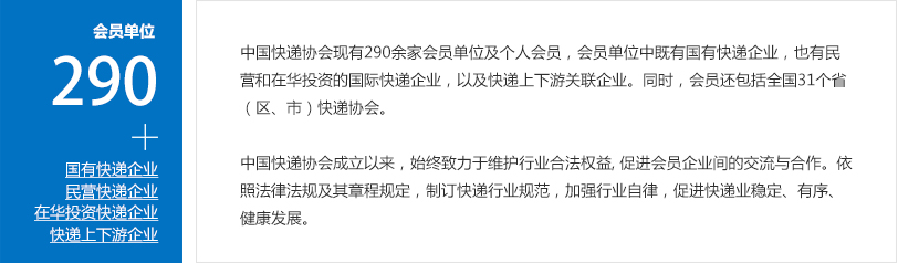 本会宗旨: 坚持实事求是、注重实效和民主协商的原则;维护会员单位合法权益,提供协会服务;加强快递企业之间、快递企业与其他企业和组织间的交流与合作,提高快递服务和企业内部管理水平;规范会员企业行为,促进快递行业自律,促进快递市场稳定、有序、健康发展;充分发挥全国性行业组织在政府和企业间的桥梁和纽带作用。