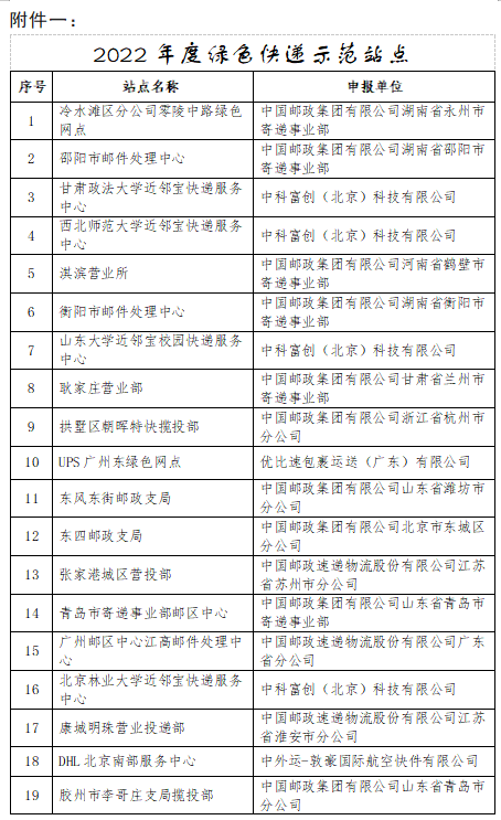 附件:1.2022年度绿色快递示范站点