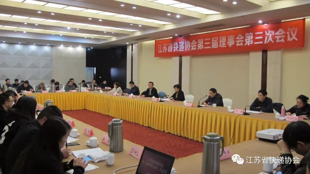 江苏省快递协会第三届理事会第三次会议于1月30日在南京召开。省邮政管理局张水芳局长、省快递协会孙安宁会长出席了会议。省协会监事、理事和全体团体会员代表参加了会议。