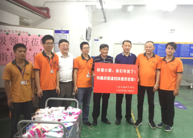 8月15日,上海市邮政管理局党组书记、局长夏颐,上海市快递行业协会会长沙剑湧、秘书长高镇海等领导冒暑前往上海EMS漕河泾营业部进行高温慰问,这是市邮管局和市快递协会今年进行的首次高温慰问。