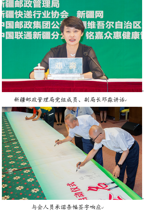 活动最后,行业协会副会长、新疆邮政EMS市场部总经理姜波代表全行业宣读“绿色发展、绿色行动”倡议书,顺丰速运、京邦达公司员工代表进行表态发言,与会人员在承诺条幅签字响应。
