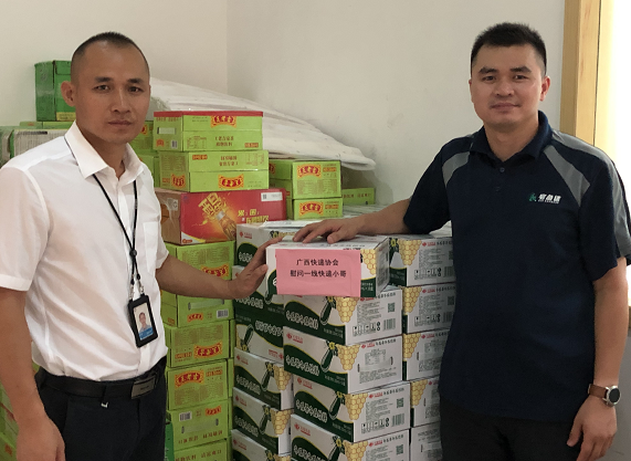 近日,广西协会组织了一批清凉饮料,送到快递企业一线快递小哥手上,以表达协会对一线快递小哥在炎炎夏日下辛勤劳动的敬意。