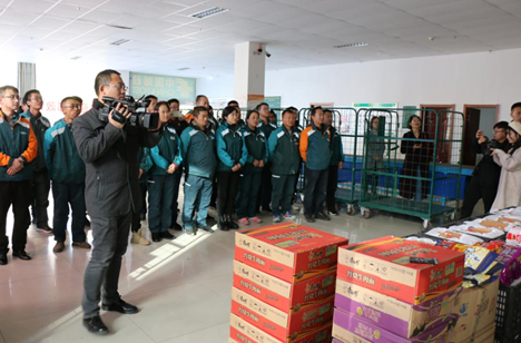 慰问组一行在呼和浩特邮区中心局慰问时指出,幸福是奋斗出来的,快递小哥为千家万户送来了方便送来了幸福,为社会作出了贡献。希望他们继续努力,加油,为美好幸福的生活不断奋斗,还亲切嘱咐他们在寒冷的天气要注意防寒保暖,注意送货时的交通安全。