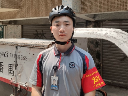 5月25日,番禺一名小孩从家中窗台防盗网的间隙中掉了下去,头部被防盗网两条护栏夹住,身子悬在半空,家长在阳台内不能将小孩拉回去,路过的顺丰快递小哥李佳峻见到后,迅速把电动三轮车开到楼下,爬上车顶,沿着该居民楼的外墙徒手爬上了二楼防盗网的挡雨棚上,从下向上用力托举,最终成功帮助家长将小孩托回家中。
