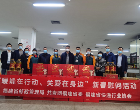 2月2日,福建省快递行业协会联合福建省邮政管理局、共青团福建省委组成慰问小组,开展“暖蜂在行动、关爱在身边”新春慰问活动。