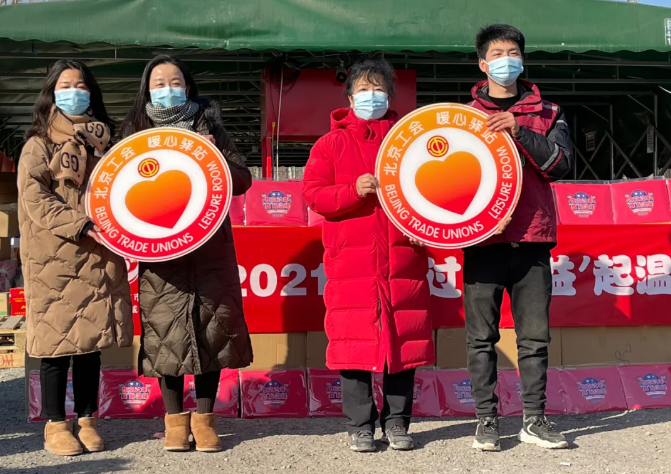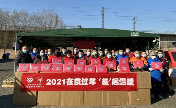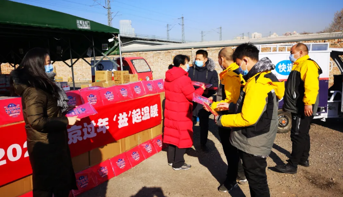 在北京市总工会的支持下,北京市快递协会联合北京市温暖基金会于2021年2月4日 ,在丰台区万泉寺梆子井甲5号院附近的快递集中处理点开展了“在京过年‘益’起温暖”--慰问留京过年的快递小哥温暖公益活动,为节日期间坚守在生产一线的快递小哥送上温暖大礼包。