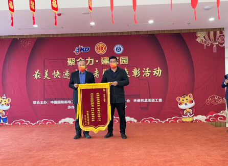 为倡导全社会关心关爱“快递小哥”,体现快递小哥作为“美好生活的创造者、守护者”“最美劳动者”的风采,展现在防疫工作中,快递配送从业人员勇挑社会责任、冲锋抗疫一线的良好精神风貌,1月24日,由中国国防邮电工会、北京市总工会、北京快递协会联合天通苑北街道组织开展的“聚合力·建家园——最美快递志愿者慰问表彰”活动在天通苑北街道党群服务中心隆重举行。中国国防邮电工会刘迎祥主席、北京市总工会服务工会孙宇主席、昌平区总工会王冰主席、天通苑北街道工委李刚书记以及北京市快递协会领导出席了本次活动。北京顺丰速运有限公司快递员金亮等15名快递员作为一线快递小哥的代表参加了慰问表彰活动。