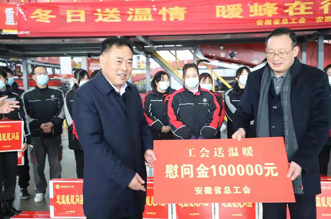 此前,安徽省总工会、安徽邮政管理局联合慰问组已赴芜湖、蚌埠、六安等9地市,向辛勤工作的快递企业员工代表送上新春祝福和暖心礼包,让广大职工切身感受到党和政府的关怀和工会大家庭的温暖。
