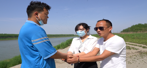 “谁家的孩子落水了!”皮金志一边大喊一边将孩子往高处的沙地抱,此时管先生发现孩子不在原来的地方玩耍,快速奔跑过来发现是自己的小儿子小宝。