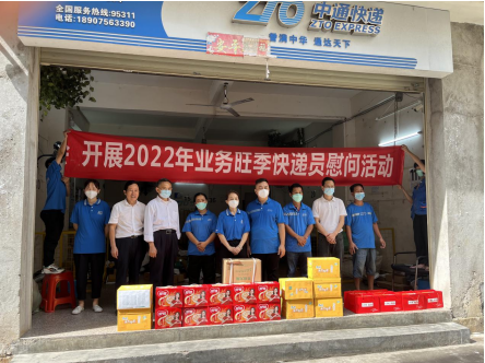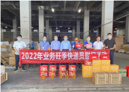 11月15日至16日,受中国快递协会委托,省邮政管理局、省快递行业协会联合开展2022年快递旺季服务保障调研慰问活动,为坚守在一线的员工送去米油、饼干、八宝粥、饮料等慰问品,将关怀和温暖送到基层一线。省邮政管理局局长丰圣少、纪检组长陈振权、副局长华雄、市场监管处处长郭仁祯和省快递协会会长、省邮政分公司副总经理杜标岭,省快递协会秘书长张少中等领导先后对菜鸟、邮政、极兔、中通、顺丰和德邦等邮政快递企业进行了调研慰问。