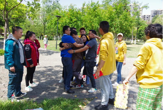 活动中,12355心理老师首先将快递小哥们分成五个小组,通过破冰游戏“爱的传递”,即小组成员手牵手围成圆圈,每个成员进行自我介绍并说出前一个成员的名字,然后不用手接触呼啦圈完成穿越,游戏旨在让小组成员在轻松愉悦的氛围里尽快熟悉起来,为后面的正式活动做好铺垫。接着,心理老师带领所有小组进行“立锥之地”游戏的挑战,所有小组通过讨论、尝试都顺利完成了全体组员站在两张15厘米见方软垫上的挑战。但随着游戏难度升级,所有人要站在1张软垫上,这对小组的站立方式和默契程度都提出了更高的要求,最终每个小组都凭借着组员们的巧思、团结和坚韧意志完成了挑战,也让小组成员之间的关系变得更加紧密。在随后的“快递速运”、“前方打仗后方支援”等游戏中,12355心理老师积极调动现场气氛、引导小组成员发挥想象力和创造力,在更加考验反应和默契的游戏里顺利完成挑战,所有小组成员都围在一起欢呼庆祝,爽朗的笑声久久回荡在公园上空。活动结束后,12355服务台向所有参加活动的快递小哥们送出了精心准备的小礼物,也衷心祝愿他们在往后的工作生活中顺顺利利、开开心心。