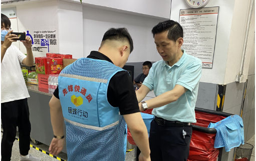 慰问组一行先后来到河西区邮政、顺丰、京东、中通等4处基层网点,向一线邮政快递从业人员发放防暑药品、饮品以及防暑降温背心等物资,并祝广大邮政快递从业人员端午安康。
