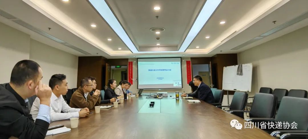 10月8日,四川省快递协会就进一步完善提升四川快递行业工作号功能与需求与中国移动四川公司进行了交流。省快递协会秘书长王潇、中国移动四川公司交通事业部高级总监巫明燕等参加交流会。