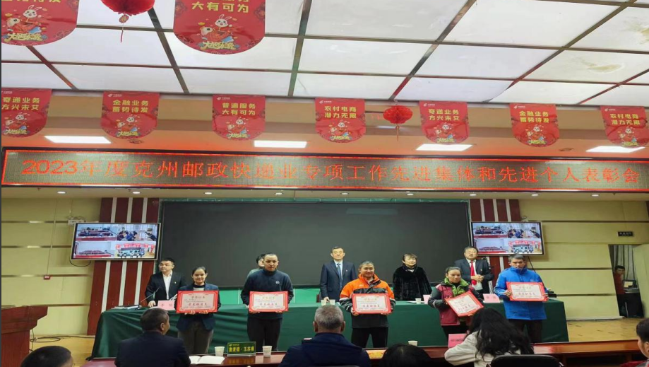 会议宣读了《2023年度自治州邮政快递业专项工作先进集体和先进个人的决定》,为“最美快递员”颁发奖牌、证书,号召全体邮政快递从业人员向先进学习,为邮政快递业高质量发展贡献力量。