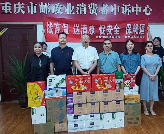 2024年7月29日,重庆市快递协会秘书处负责人及重庆市邮政管理局杨夏副局长和普遍服务处、人事处负责人一行到重庆市邮政业消费者申诉中心(12305)现场,为在场工作人员送上矿泉水、饮料、牛奶等物品,对他们在炎热环境下坚守岗位表示感谢。同时希望12305全体同志努力工作,奋战高温,为快递高质量发展做出贡献。
