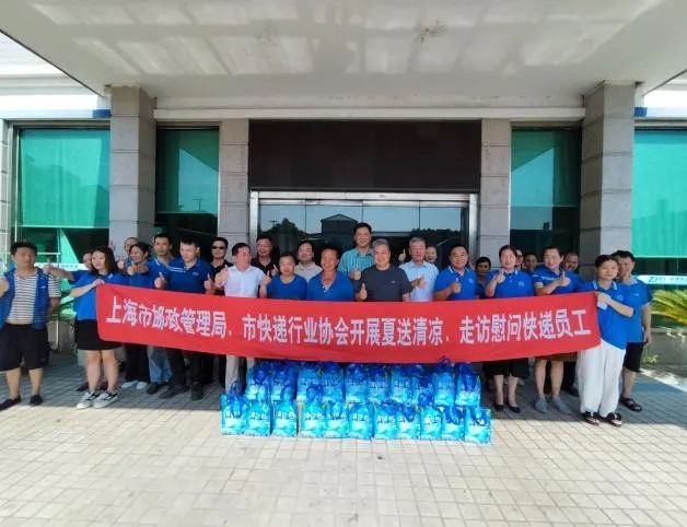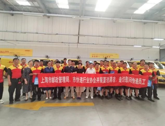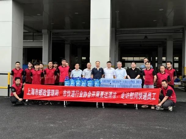 8月9日,上海市快递行业协会联合松江邮政管理局、奉贤邮政管理局开展夏日赴敦豪和中通一线送清凉走访慰问活动,看望慰问奋战在高温一线的快递小哥。