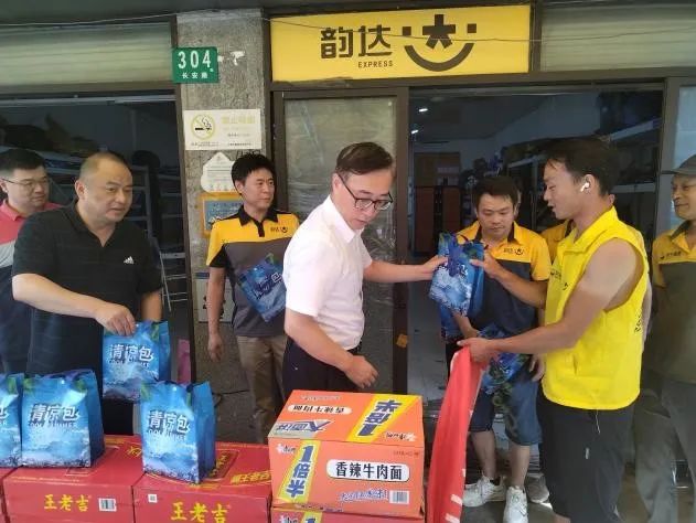 7月16日,党组成员、副局长、二级巡视员余洪伟带队赴静安和普陀区中通、韵达、极兔等网点走访慰问,为快递小哥亲自送上夏日“清凉包”和慰问品。