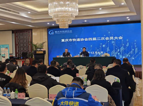 2024年12月6日,重庆市快递协会召开四届二次会员大会,审议通过协会章程修改等有关事项。市邮政管理局周向东局长到会指导。