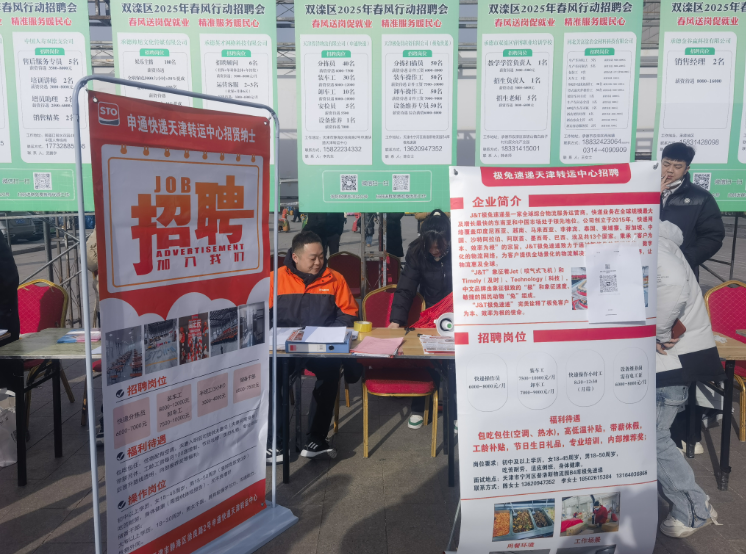 2月21日,天津市快递协会组织天津中通、申通、顺丰、极兔、韵达等5家快递企业赴河北省承德市参加“春风送岗促就业,精准服务暖民心”春风行动,帮助快递企业补齐用工缺口。