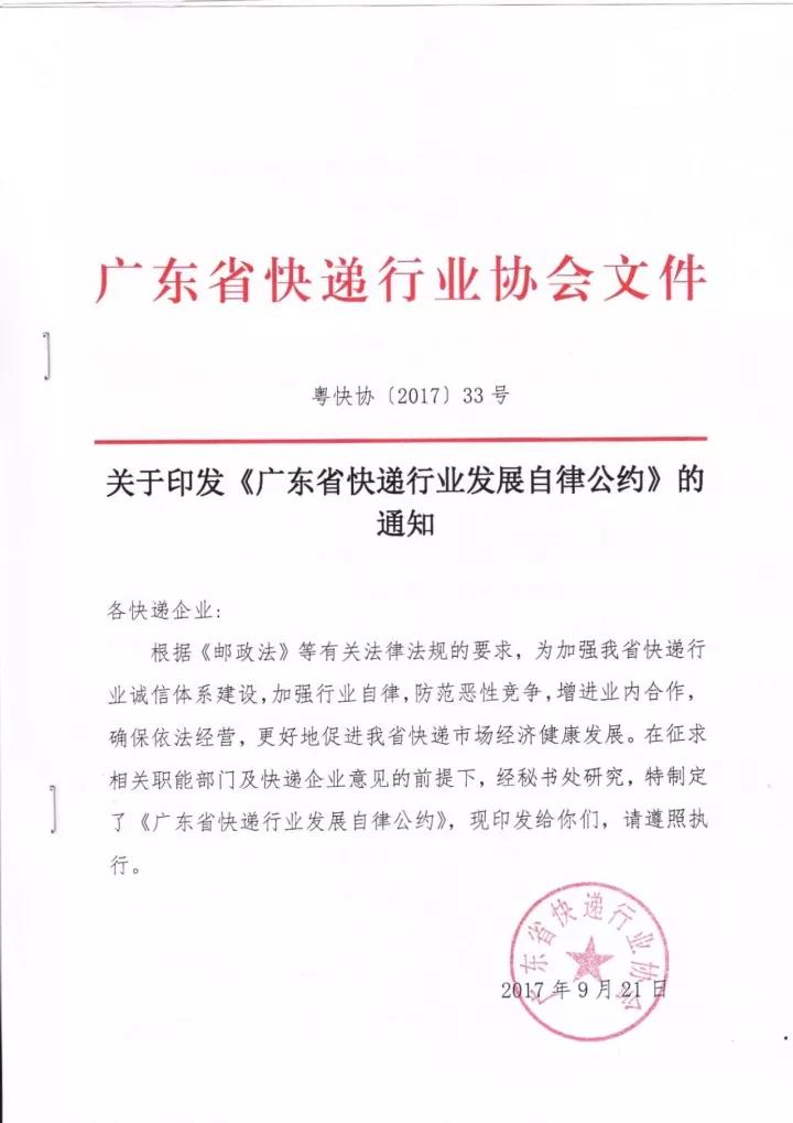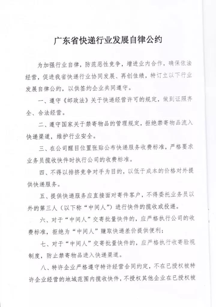 关于印发《广东省快递行业发展自律公约》的通知
