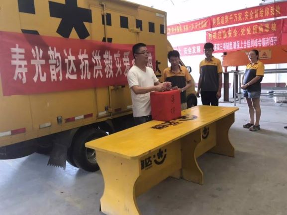 同时,韵达山东省寿光网点员工还自发组织募款活动,为当地受灾群众送去一份温暖和爱心。