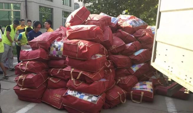 韵达山东省公司及辖内网点积极响应寿光邮政管理局的号召募捐援助物资。2018年8月25日,韵达山东省潍坊分拨中心、潍坊快运相关负责人与韵达山东省寿光网点、当地青年志愿者们一同将满满3车的救灾物资卸下车。