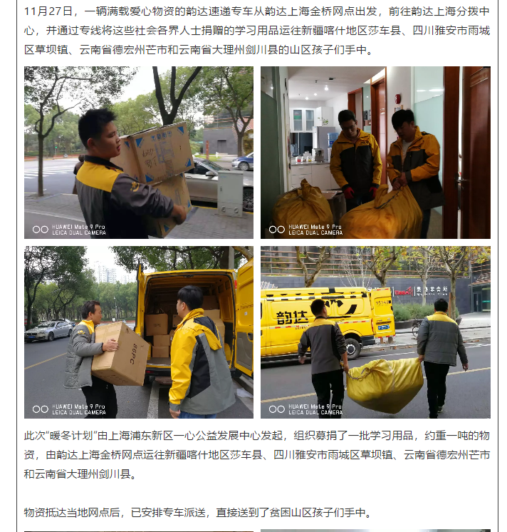 公益|送温暖,韵达人一直在行动!