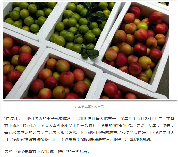 “快递+扶贫”出新招——贵州毕节中通扶贫助农实践观察