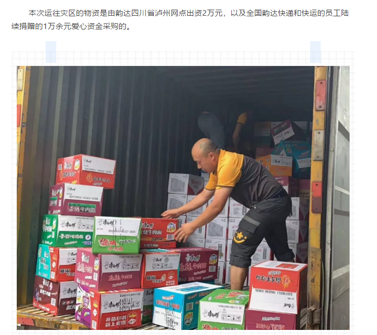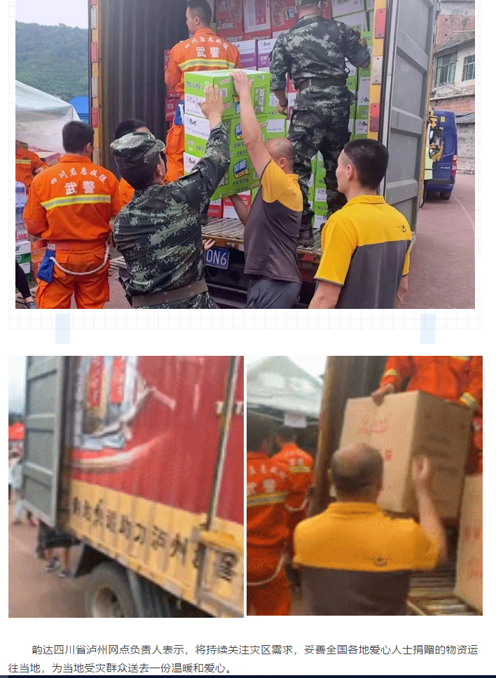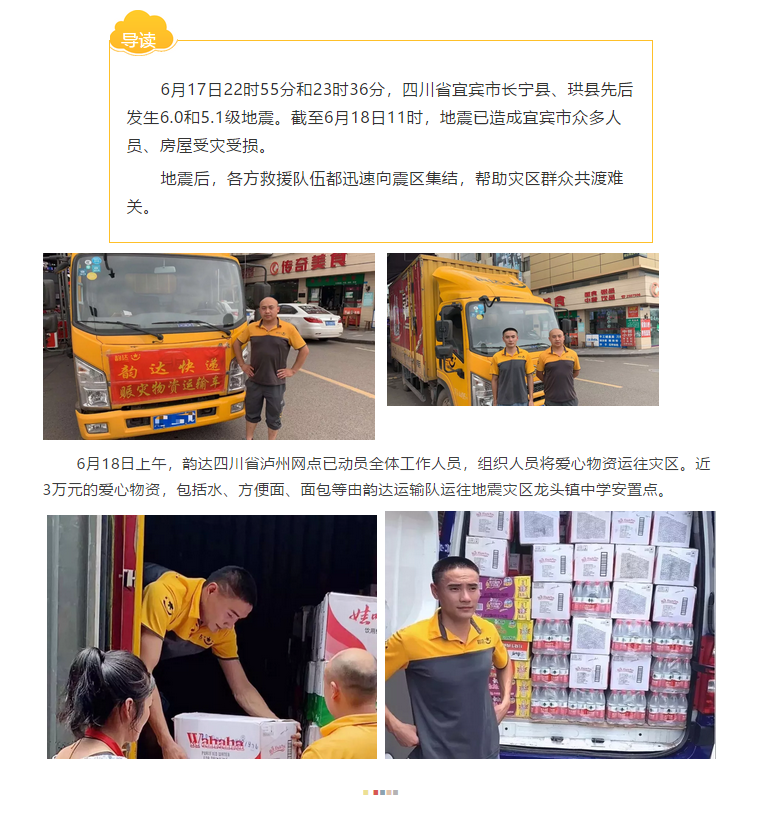 韵达四川省泸州网点参与宜宾抗震救灾行动