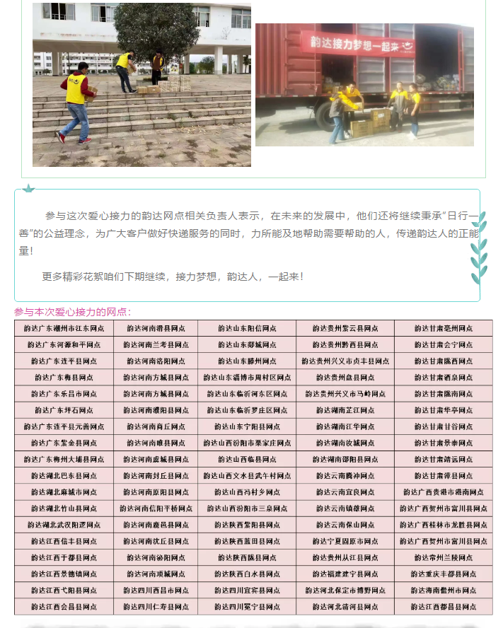 公益 | 接力梦想,90余家韵达网点一起干大事!