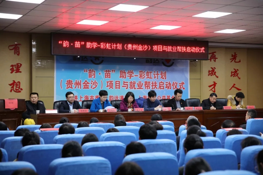 2020年1月15日,由民进上海市委、韵达速递、上海韵达公益基金会共同主办的“韵·苗”助学-彩虹计划与就业帮扶启动仪式在贵州省金沙县金沙中学举行。韵达副董事长兼高级副总裁、上海韵达公益基金会发起人兼名誉理事长,上海韵达公益基金会理事长,上海韵达公益基金会副秘书长及基金会公益志愿者出席了活动。韵达总部相关负责人及韵达贵州省毕节市金沙网点负责人等应邀参加了活动。
