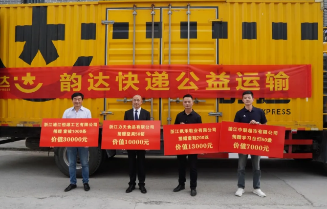 韵达浙江浦江网点承运爱心物资