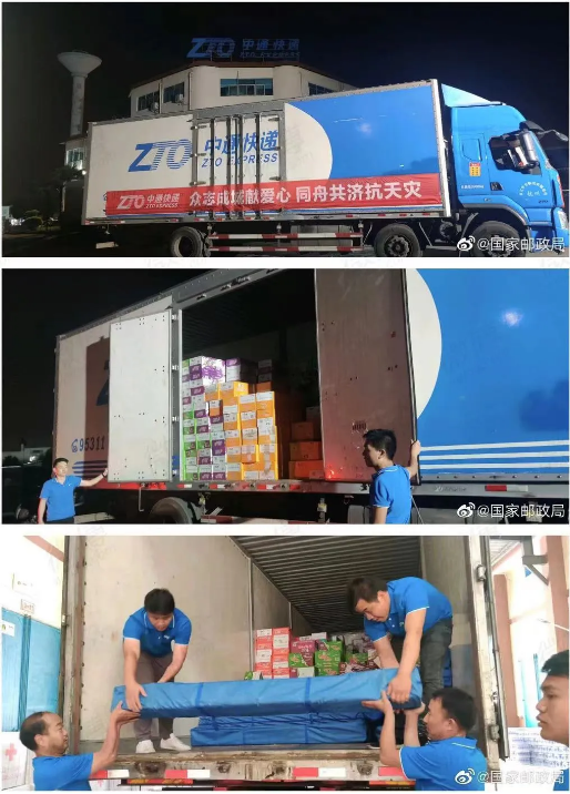 5月22日深夜,一辆满载救援物资的中通快递货车从云南昆明出发前往发生地震的大理州漾濞县。地震发生后,中通快递云南管理中心第一时间成立抗震救灾应急小组,采购救灾物资。首批运往漾濞县的物资包括帐篷、矿泉水、方便面等,价值约10万余元。 5月23日清晨,首批物资运抵漾濞县,在当地红十字会的统一安排下,这批物资按需运往顺濞镇及其下辖新村村,云南中通抗震救灾应急小组深入灾区一线,将物资发放至村民手中。