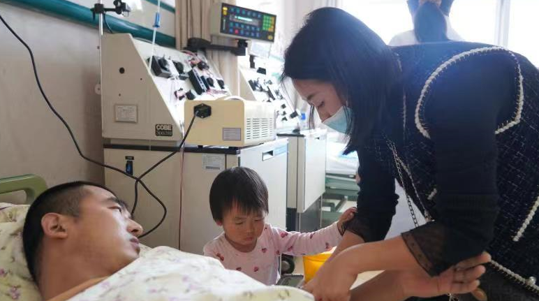 在结束捐献回酒店的路上,崔洪财5岁的大女儿拉着他的手,心疼地问道:“爸爸,你怎么老是打针啊?你疼不疼啊?”