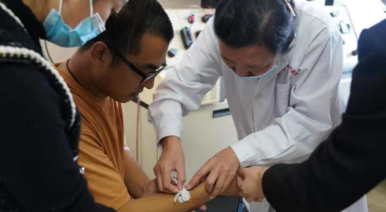 崔洪财爱人赵秋娜一直陪伴在他的身边,说起这几天的经历,不禁红了眼眶,“第一天打完针还好,从第二天开始,他的反应就比较大,头晕恶心有时还呕吐,我看着真是很心疼。”赵秋娜擦掉眼泪继续说道:“不过我们都觉得,如果能救人一命,受这些罪也值了!”
