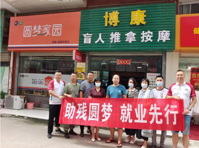 8月26日,武汉市残疾人就业服务中心工作人员与圆通项目负责人一起到新洲区阳逻实地调研在盲人按摩店开办的“圆梦家园”驿站,也是圆通助残项目成功开办的第一家。