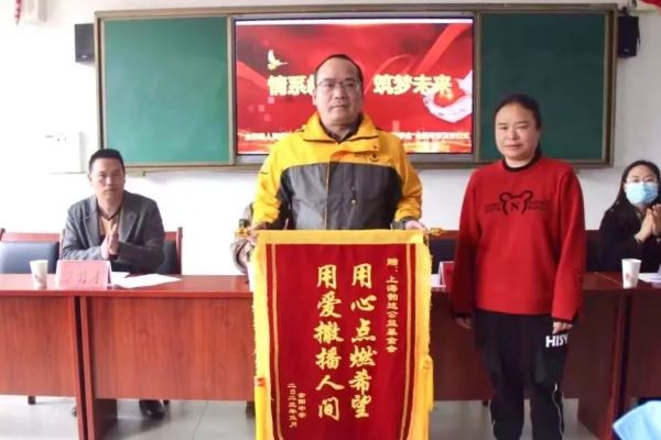仪式上,金阳中学向上海韵达公益基金会赠送锦旗,感谢上海韵达公益基金会始终情系彝区,助力孩子们筑梦前行。