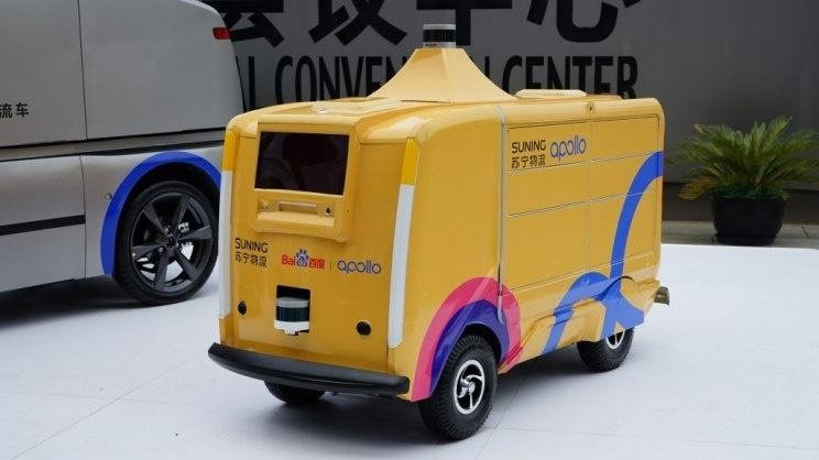 宁物流与百度自动驾驶事业部联手发布战略合作计划,双方将加速落地物流自动驾驶技术,这就是采用百度Apollo技术的苏宁物流无人快递车。